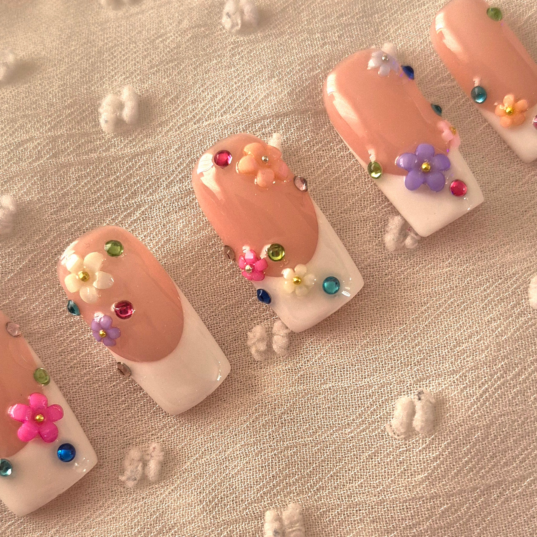 Press-On Nails | Sunset Blossom | Fait Main en France
