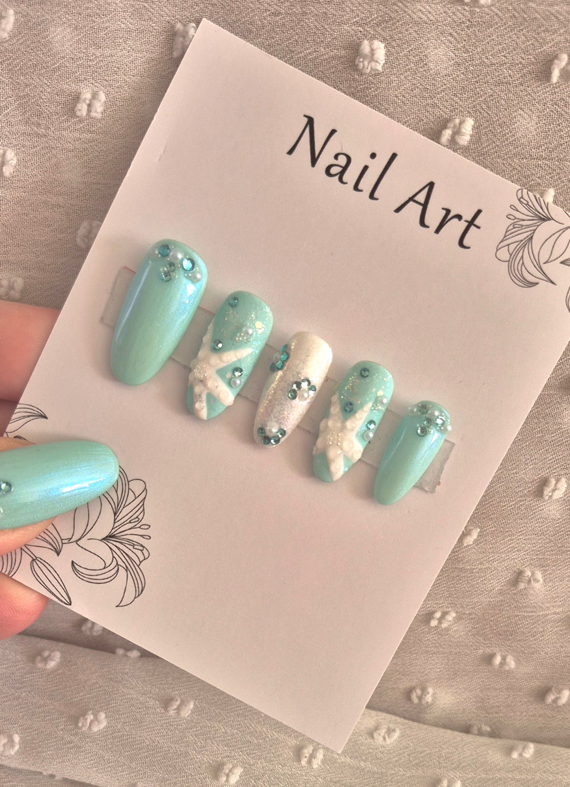 Press-On Nails | Blue Beach | Fait Main en France