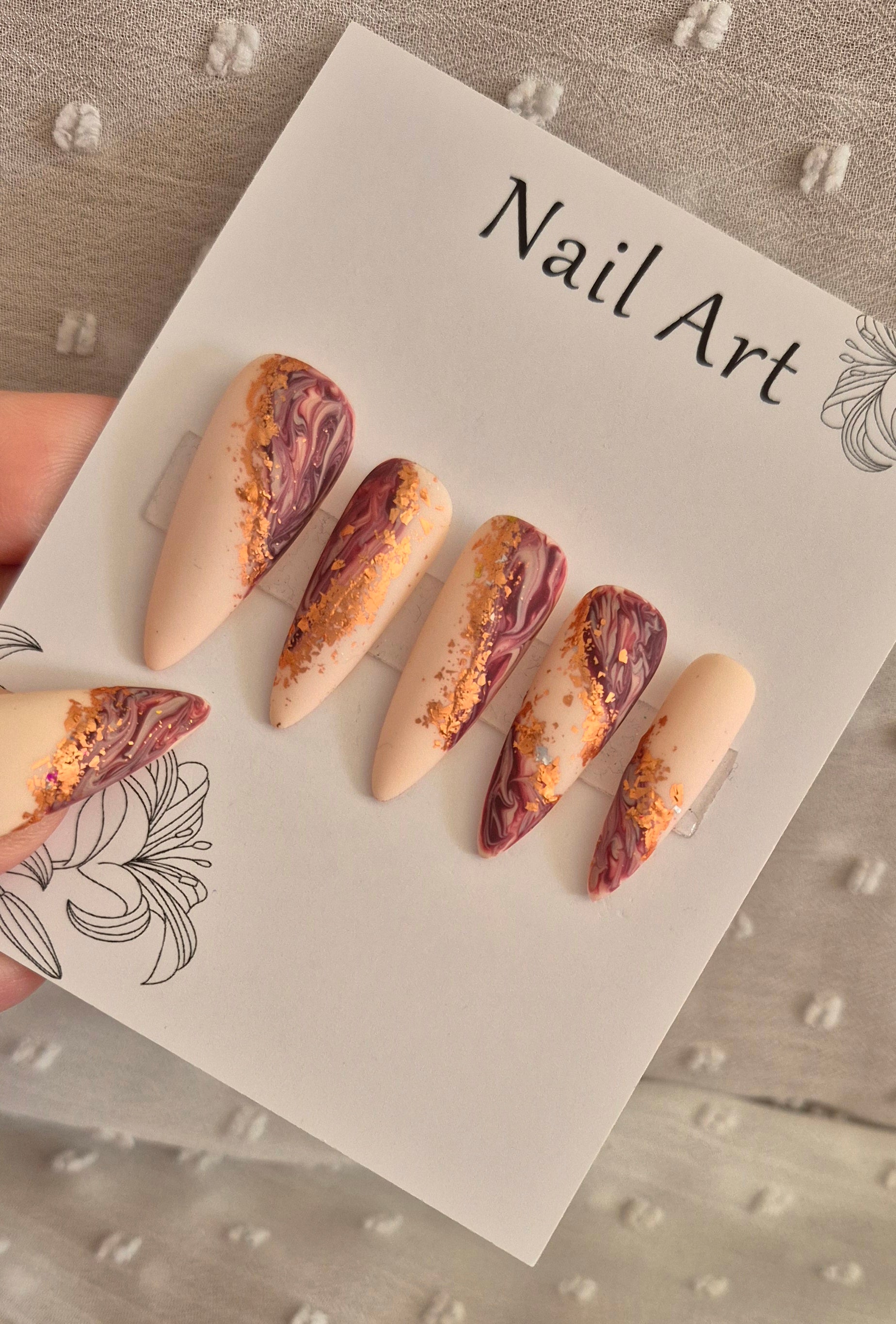 Press-On Nails | Marble Chocolate | Fait Main en France