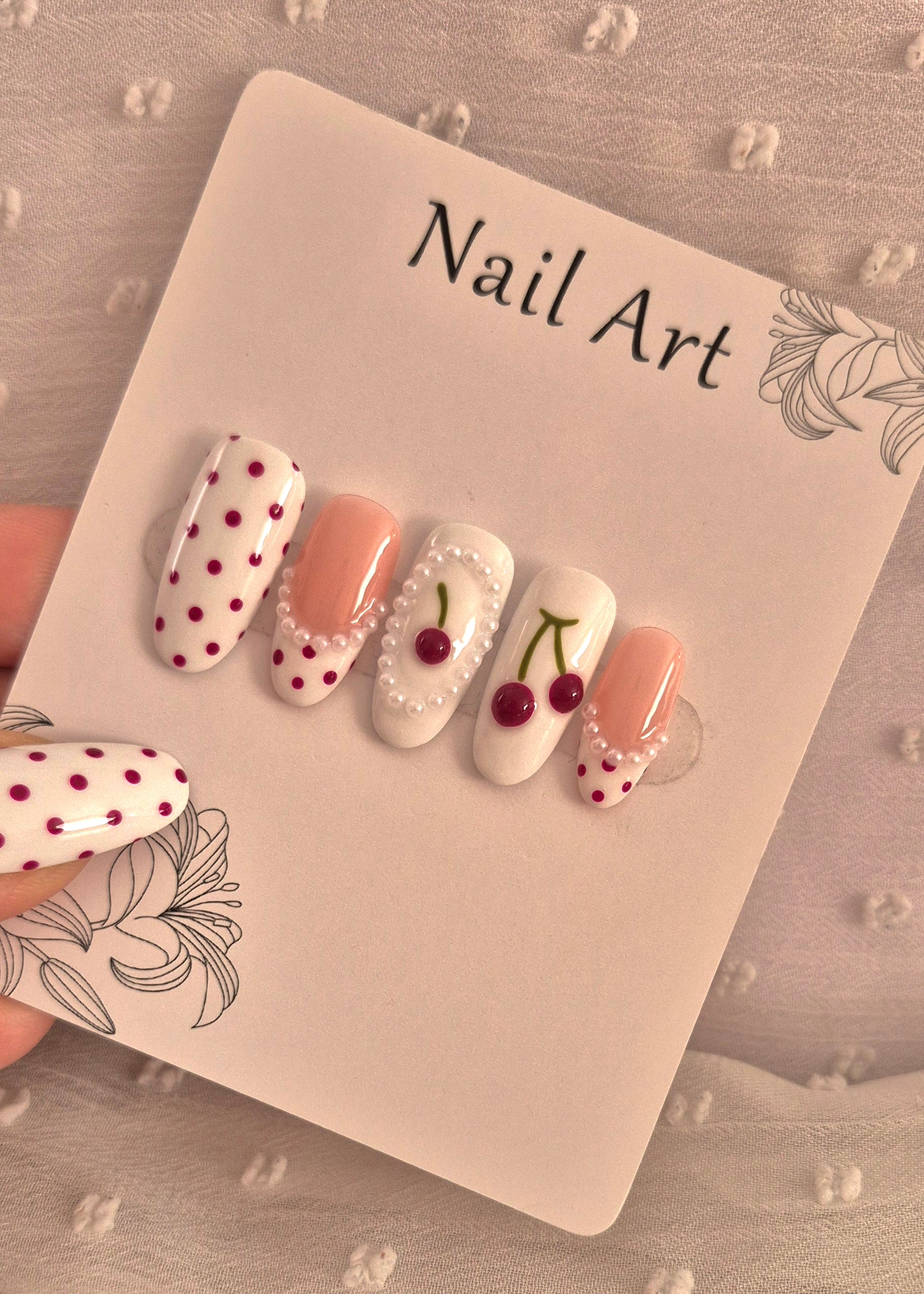 Un set gourmand aux cerises rouges pour une manucure fraîche et rétro 🍒